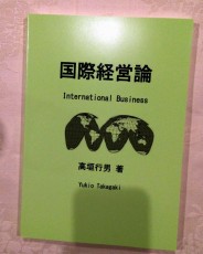 6人の集まりなので堅苦しい挨拶や近況報告などなく、もう最初からポンポン言葉の飛び交うざっくばらんな呑み会になりました。ただ、高垣行男君が現れず皆で気をもんでいると、一時間ほど遅れてやってきて、すまんすまんと言いながら最近の著作「国際経営論」を皆に一冊づつ配ってくれました。もう何冊目かになる著作だそうです。