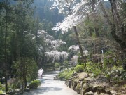 山を下り、全国しだれ桜10選となる境内の桜を眺めつつ、昼食は西谷の宿坊「岸の坊」で精進料理を頂きました。古風な、赴きのある器に、吟味された食材と巧みな味付け、大満足のもう一つは、禁制(?)であろう般若湯も所望でき乾いた喉を潤すことが出来たことでした。(本坊は山門の外にあるのかな?)
