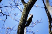 今回は舞岡公園に花見が目的で出かけた。行く道ところどころに桜が咲いていたが8分咲きであった。向かいの森に山桜が咲いている。山桜は花と葉が一緒に出るので森に調和して美しい。道端にきぶしの花も咲いていた。 林でアオゲラの声がしたので見ると高い木に止まっている。早速、カメラに収める。狐久保に行く道端の日当たりにカントウタンポポが咲いていた。おおなばの丘では桜がかたまって咲いていて花見の人が来ていた。 以上