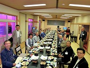夕食では各人持ち時間1分で近況紹介を行いましたが、全員タイムオーバー。しかし各OBの生活の様子、趣味や健康法、仕事の紹介等に関心が集中し、食事片手の懇親会はあっという間にお開きとなりました。入浴後も積もる話は二次会へと続き、日付が変わって幹事終了を告げるまで歓談が続きました。