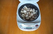 写真2 生にんにくをばらして炊飯器に入れた状態(400g)