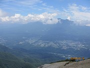 砂浜越しに八ヶ岳のすそ野が広がっています。小淵沢町から茅野市にかけての中央高速道路が見られます。 |