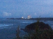 ・暗くほんのり見えていたロケットが もうもうと煙を下にゆっくりと上昇開始
