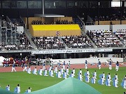 演技の最後には和歌山県出身の坂本冬美さんがテーマソングの「明日へと」を歌い、出演者と観客も一体となって歌い、それに合わせて展開するマスゲームが感動的でした。
