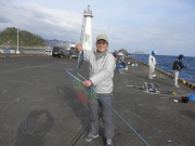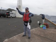 今回初参加のS氏老釣り師Y氏の指導の下フカセ釣りに挑戦した。暫くすると、Y氏の撒き餌の効果があったのか、S氏の竿に大きな当たりが来た。手応え十分で慎重に引き上げようとしたが、ハリスを切られて逃げられてしまった。気を取り直して竿を出していると又大きな当たりが来た。右に左に走り回る魚に5分程度耐切りカツオを釣上げた。ビギナーズラックとは