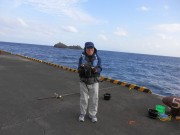 8:30竹芝港出航後、大島~新島を経て順調な船旅で、やや風は強かったが新人の二人共船酔いも無く無事11:35式根島に予定通り到着した。民宿「水久」の女将さんの迎えを受け、車で宿へ直行、離れの4部屋を確保できたので安眠のできる部屋割り後、別送荷物を整理し幕の内弁当の昼食を摂った。しばらく休養した後、全員で式根港桟橋に行き釣りを開始した。この日は曇り空で強い北風が吹き荒れる中、新人のS氏はフカセ釣り仕掛け、M氏はサビキ釣り仕掛けで老釣り師Y氏の指導の下それぞれ竿を出した。釣り出してから暫くすると風が更に強まり、竿を出すのも困難になってきたので16:00に納竿した。