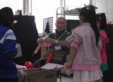 会場の中で、KSSの大先輩の山下さんにお会いしました。山下さんは日頃から地域のお年寄りのための配食や学童保育のボランティアをされていますが、今日はイベントのひとつで、バルーンアートのコーナーを担当されていました。このコーナーは大人気で、午前の部が終了しても、順番待ちの子供が多いので昼休みを返上して作り方を丁寧に教えておられました。