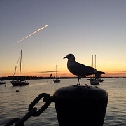 市内散歩:日の出前に家内と“Harbor Walk”を散策。ホテル裏の運河から北に向かって、海沿いに遊歩道がある(写真-1)。途中、対岸にあるローガン国際空港に向けて綺麗な写真が撮れた(写真-2)。“Freedom Trail”は歩道に煉瓦が線状に埋め込まれていて、これを追えば2時間程度の市内散歩が楽しめる。立派な教会と墓地が多い(写真-3)。