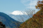この日はよく晴れて紅葉も見頃とあって御殿場線は満員、谷峨駅で沢山の人が下車、丹沢湖方面行きのバスは乗りきれず臨時のバスが出る。玄倉で富士山が見えていたので下車、富士山の写真を撮る。向かいの山の紅葉も美しい。玄倉川橋に行くと数人望遠鏡を立ててクマタカがいると覗いていた。するとクマタカが空高く左から右に飛んで行き一瞬望遠鏡で見ることができた。朝、ヤマセミが橋の下を潜って飛んで行くのを見たと言う。