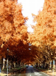 スナップショット:紅葉のメタセコイア並木道