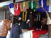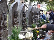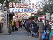写真1 東の宮恵比須神社山門、水掛け不動の参拝者が行列
