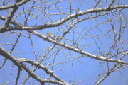 さくらなみ池にくると葦のなかにカイツブリとコサギがいた。狐久保に向かっていくとハクセキレイが畑の中を動き回っている。網の塀があるので慎重にカメラを向ける。狐久保ではコゲラが高く木の枝を飛びまわっていた。狐の石のおくに一瞬アオジが姿を見せる。