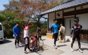 快晴の下、アシストの森下さんに集合写真を撮ってもらって、8時半に奈良県・吉野山へ向け、花見サイクリングに出発。