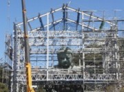 写真-2、3 足場の中から徐々に現れる大仏様(3/2、4)