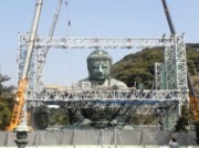 鎌倉大仏の55年ぶりの修理(保存調査とクリ-ニング作業)は、2/末で終了し3/1に工事用シ-トが外された。その後足場の解体作業に入り、徐々に大仏様のお姿が現れる珍しい風景をみる事が出来ました。(次回、この風景を見られるのは50年後か?)3/10に全修理工程が完了し、3/11から通常通りの拝観が開始され、綺麗なお姿となった大仏様を拝観するために多くの参拝者が訪れています。