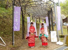 写真-1 入園料500円。藤棚の入り口では藤娘が迎えてくれる