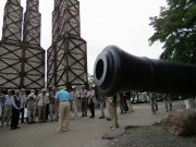 世界遺産登録前には訪れる人もまれだった反射炉も今は観光客で大賑わい。説明をボランティアガイドにお願いする。ガイドの流れるような口調と時折入るユーモアに一同納得し感心する。反射炉の周りを巡りながら、焚口の意味や近くに並べられている大砲、鉄製24ポンドカノン砲(実はレプリカ)についても教えてもらった。