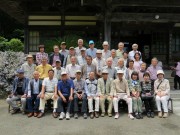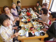 日米下田条約が締結された地、了仙寺で集合写真を撮り、見学もほどほどに魚料理の昼食の店に向かう。さすが下田、ならんでいるのはお造り。キンメ、マグロ、カツオ,イカ等々。