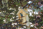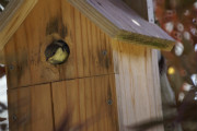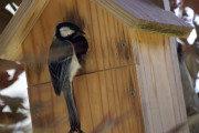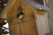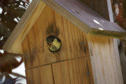 11日も早く起きて巣箱を見ると雛が奥で顔を見せている。今日は巣立つと判断見守ることにした。結局昼頃巣立ったのであった。雛は1羽であった。