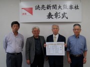 写真―1 読売新聞和歌山支局長から表彰される上田さん
