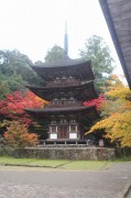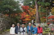 11月14日早朝7時清水出発、行く先は琵琶湖周辺、高速を一路西へ。今年の車内は何故か静か、沿道の野山の紅葉はイマイチで単調なドライブが続く。名神・湖東三山PAから一般道へ降り湖東三山の古刹「西明寺」へ。ここは平安時代建立の天台宗の寺、国宝第一号に指定された本堂、三重塔、重文の二天門等があり、春秋冬に開花する不断桜でも有名。特に三重塔の初層には鎌倉時代に描かれた極彩色の壁画があり一見に値する。小雨のぱらつく中、モミジ色づく境内を散策、歴史の重みと古刹の風情を堪能した。