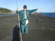 フカセ釣り名人Y氏の指導の下、初めてのフカセ釣りに挑戦したH氏が何と一投目で良型のメジナを釣上げてしまったのだ。誰もがビギナーズラックと思っていたら、何とその後釣り落とし数度の経験を克服し、結局5匹のメジナを釣上げ当日の竿頭になった。Y氏の指導も良かったと思われるが、来春の釣行ではビギナーから準名人に変身か? ・・・ 「続く2017春の巻」