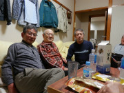 11月19日(土)この日は天気予報通り土砂降り状態の天候となった。朝食後釣りを諦め部屋に引き上げテレビを見ていたが、10時過ぎ小雨模様になったので若手組(N氏、O氏、S氏、筆者)は釣りに挑戦、長老組(S氏、Y氏、H氏、Y氏)は終日民宿で過ごすこととした。若手組野伏港に行き雨の中竿を出した。時々叩き付けるような豪雨も有り、当たりも無かったので15:30納竿した。長老組達は口々に、酒は一滴も飲まずテレビを見ながらごろ寝していたと言っていたが信じられる話ではない?
