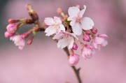写真-1:早朝の川津桜。まだ青みがかっています。
