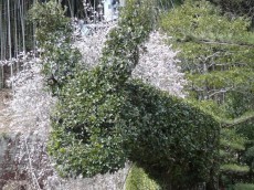 樹木は姥目樫(ウバメガシ:和歌山では通称バベと言い、有名な備長炭の原料)で、見方によっては恐竜か他の動物にも見えますが、家人のお話によると新芽が出ると更に龍らしく見えるとのことです。