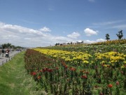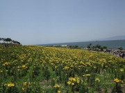 大阪舞洲のゆり園は新たな名所として2013年に開園し、大阪湾に面した総面積4万㎡に、オレンジエリア、イエローエリア 、ピンクエリア、色が混 合するジクザクゾーン、ボーターゾーン等に分かれて総数250万輪のゆりが色鮮やかに咲き乱れ、空と海のブルーと、ゆりの花の色彩が見事に映えた景観に圧倒されました。