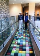写真―3 足元ガラス下はカラータオル敷きのコットンロード