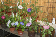 7月23日(日)静岡市清水区入江にある浄土宗法岸寺境内で入江商店会・入江地区まちづくり推進委員会・法岸寺による「朝顔まつり」が開催され、大輪の花や色模様の珍しい花など、多数の朝顔が出品されました。最優秀賞には大輪のピンクの花が2つ並んで咲いた朝顔が選ばれました。