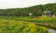 写真-1 : 百穴草刈前(4月下旬/市ノ川と菜の花)