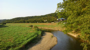 写真-4 : 百穴草刈後(7月下旬/市ノ川対岸)