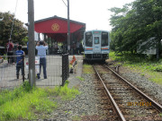 歴史を感じる雰囲気の「気賀駅」。『直虎』効果なのか、超ラッシュです。運転間隔が1時間に1本(朝夕2本)なので、乗り遅れると大変なことになります。 |