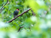 鳥は求愛の季節。「ウソ」がメスを追っかけていました。写真はオスで大きさはスズメほど。 |