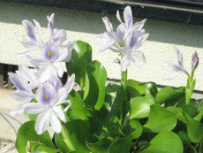 2015年5月に旧総研跡地のホームセンターで買った布袋葵=ホテイ草が、庭の水槽で今年も綺麗に咲きました。一輪咲いた後、徐々に花の数が増えました。 写真説明 写真-1 2017.7.17 一輪目 写真-2 2017.7.27 二輪目咲きました 写真-3 2017.7.28 沢山咲きました 写真-4 2017.7.31 沢山咲きました(拡大) 以上