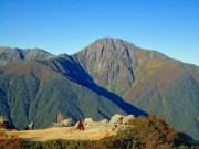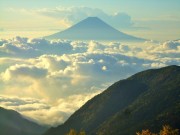 山頂手前の南御室(みなみおむろ)小屋のテント場で一泊。恐らく氷点下の朝の寒さに身が震える。空荷で薬師岳をめざす。 雲海に浮かぶ富士山や第二の高峰北岳がスッキリ姿を現す。そして薬師岳は既に秋に包まれていた。