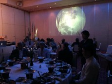 有田ロータリークラブでは数年ぶりの「お月見夜間例会」とのことで、テーブルにはススキが飾られ、中秋の雰囲気が漂う会場に、会員の奥様方も同席された約40名の華やかな会場での演奏でした。