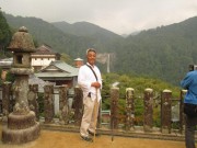 ご神体である那智の滝が本殿の後方に見える絶景をバックに写真撮影した後、隣に建つ西国一番札所青岸渡寺にお参りしてここを後にしました。