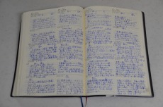 1日に数行書けるノートです。どれだけ出来たか解らないが、書き始めに「ポジティブな人に変身」「ポジティブな表現」「自分を励ますようなもの」「自分の考え・行動が客観的に観察出来る」等をメモっていました。また、「10年日記の不思議」と言う見出しの新聞記事の切り抜きが残されていました。10年日記を2度書き続けた76歳の主婦で、「何より生きる自信がついた」、「不思議に日記帳に守られているような気もする」等と書かれていました。全く同感で切り抜きしていた模様です。