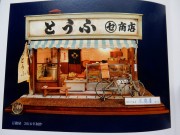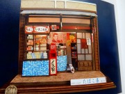 昭和の懐かしい「駄菓子屋」「たばこ屋」「とうふ屋」「居酒屋」「深夜食堂」「理髪店」「小学校の教室」等々、十数点が展示されていました。
