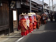 3月3日湯浅まちなみの会が主催する「第5回湯浅まちなみ ひなめぐり」を見てきました。色鮮やかな平安衣装をまとった装束姿の女性が、雅楽演奏者12名の調べに合わせて醬油の香りが漂う北町の重伝建屋地区や熊野古道を練り歩く風情は、青い空にコラボして見事でした。多数待ち受けるアマチュアカメラマンや大勢の観光客、家族連れで大いに賑わっていました。