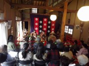 その後は、太田久輔吟醸「まえぐら」で平安時代に完成された形がそのまま残されており、現存する音楽の中では世界で最も古い姿をとどめている雅楽を和歌山雅楽会による演奏と舞踏を見聞しました。天皇即位に用いられる「萬歳楽」の演奏項目もあり、会場に入り切れないほどの人が詰めかけ、庭からの見物人が出る程、盛況でした。