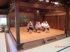 この日は季節外れの夏日となったが、新緑の木立、竹林群の中にある能舞台は暑さを感じず別世界の心地よさとなる。