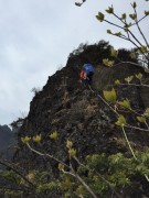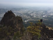 急登を詰めて妙義富士へ、頂上は一人が座れる広さしかない。更にその先は両側が切れている岩場を登って行く。以前登った尾根を眺めながらの歩きは何とも言えない。下山は山頂近くの沢を懸垂下降も交えて下降する。地図と踏み跡を頼りに、緊張感あるバリエーションルートも登山の楽しみでもある。
