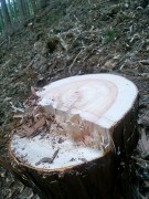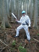写真―3:約25cm径の杉やヒノキを切ります