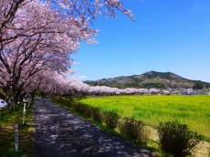 堤防沿いの桜並木と菜の花(西側、後方は日和田山)* |