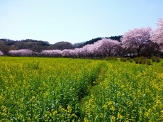高麗川が巾着の形の様に大きく蛇行(直径約500m)した埼玉県日高市の巾着田は、秋は曼珠沙華の群生地として有名ですが、春は堤防沿いの桜と内側の菜の花が咲き乱れ絶好の散策コースです。4月の第一土曜日、日曜日は「菜の花祭り」が開催され家族連れで大賑わいです。