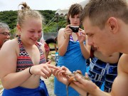 その一環として、日独スポーツ少年団同時交流でドイツ柔道オリンピック強化選手7人を有田市に迎えました。我が家にホームステイの依頼があり、快く引き受けました。初対面でびっくり!なんと可愛いお人形さんみたいなオリンピック強化選手でした。日本での初体験を満喫してもらうスケジュールとして「海に縁のない選手たちに地ノ島での海水浴・茶道・流しソーメン」また、和歌山城の忍者体験で盛り上がりました。